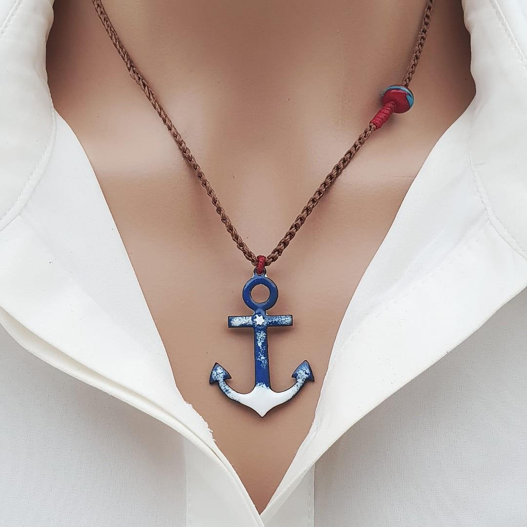 Denizle özdeşleşen çapa figürü, mavinin dinginliği ve beyazın saf ışıltısıyla buluştu. El yapımı bu kolye; güven, huzur ve özgürlük hissini boynunuzda taşımak isteyenler için anlamlı bir sembol oldu.