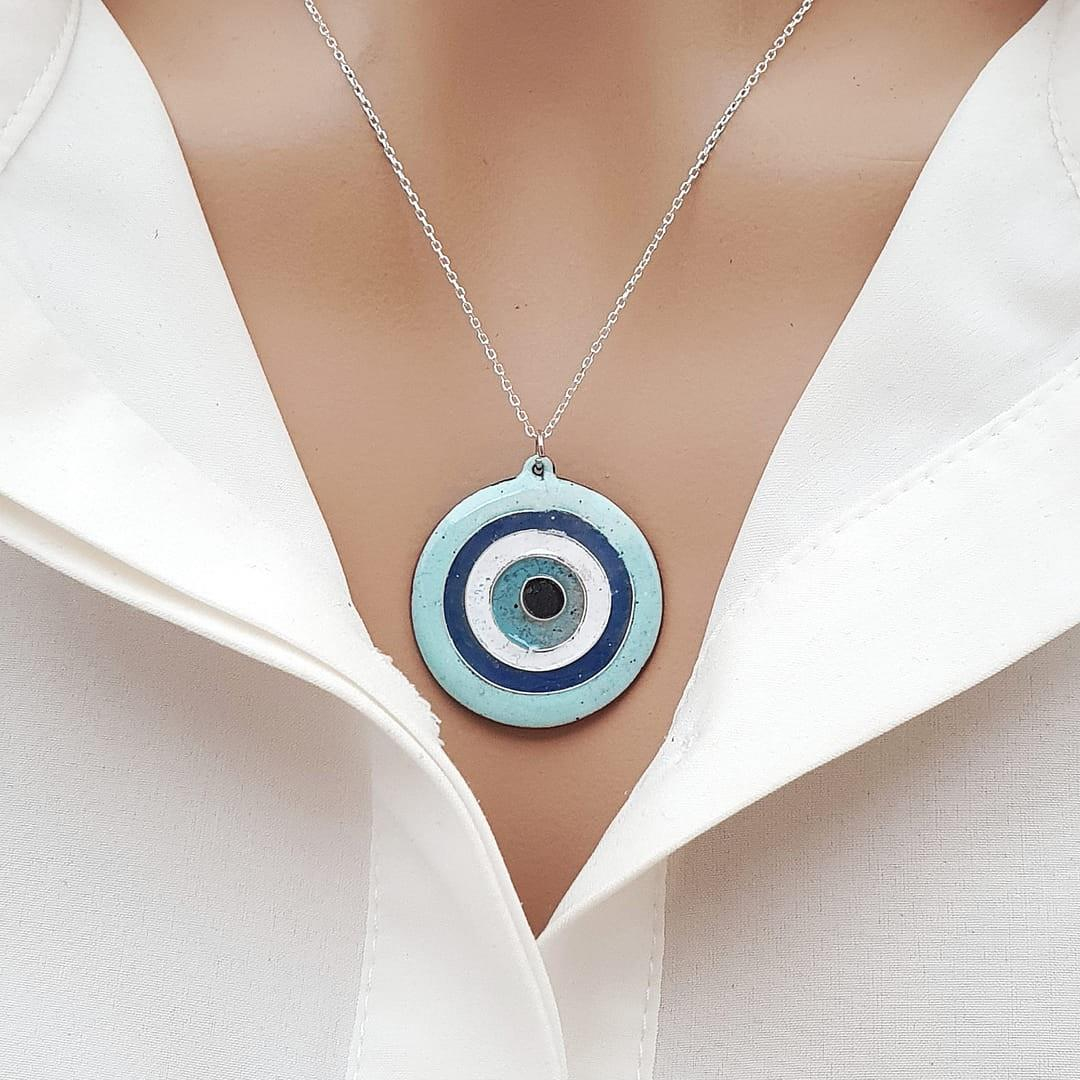 El yapımı Cloisonné Nazarlık Kolye, zarif gümüş zinciriyle tamamlanarak stilinize hem şıklık hem de koruyucu bir dokunuş katar. Ruhunuza güç katmak isteyenler için anlamlı bir seçimdir.