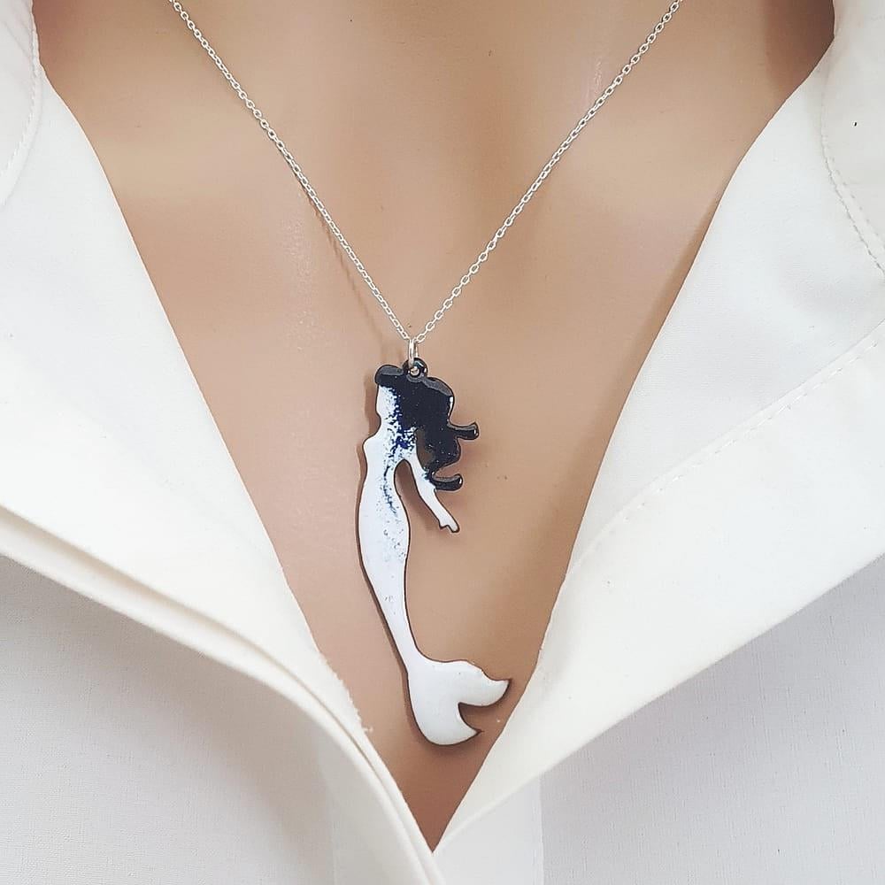 Siyah tonlarda işlenen deniz kızı figürü, gizemi, derinliği ve güçlü bir ruhu temsil eder. Zarif formuyla hem mitolojik bir sembol taşır hem de modern şıklığın ifadesi olur.