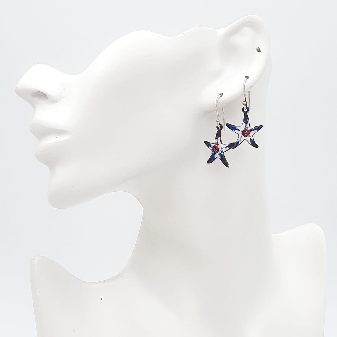 Denizlerin zarafetini simgeleyen deniz yıldızı figürü, mavi ve kırmızı tonların enerjik uyumuyla bu özel küpelerde hayat buldu. 780°C’de sıcak mineli fırınlama ile hazırlanan küpeler, deniz ruhunu günlük stilinize taşırken dikkat çekici bir şıklık sunar. 925 ayar gümüş kancasıyla tamamlanan özel küpemizi şimdi keşfedin!