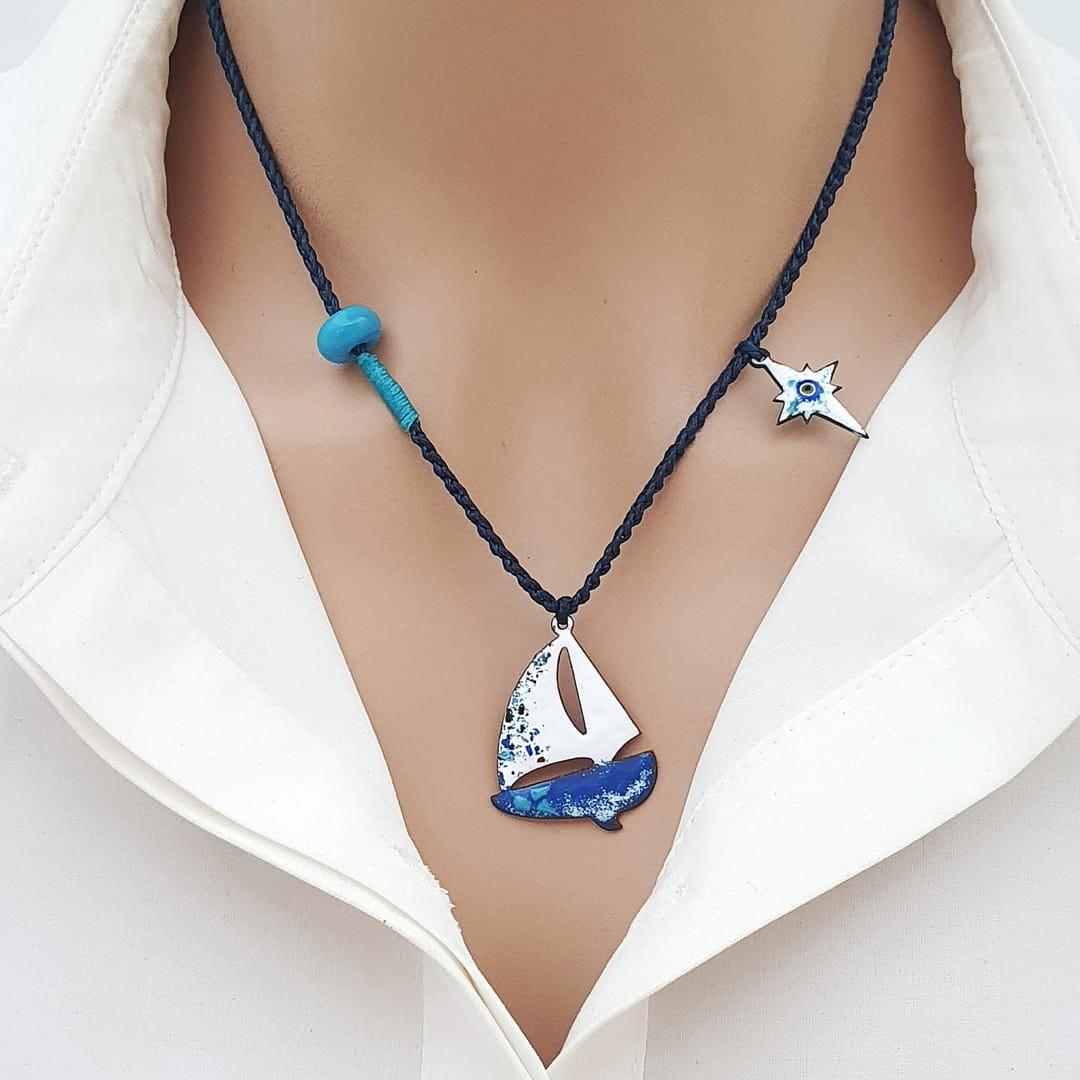 Mavinin huzuru, yelkenin özgürlüğü ve Kuzey Yıldızı’nın yol göstericiliği bu özel kolyede buluşuyor. Deniz ruhunu ve gökyüzünün ışığını boynunda taşımak isteyenler için anlamlı bir tasarım.