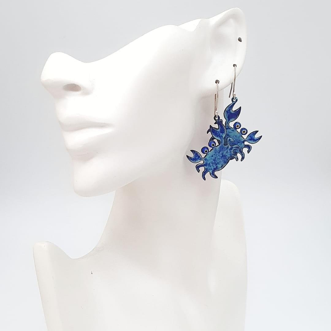 Mavinin dinginliğiyle tasarlanan bu el yapımı küpe, yengeç figürünün simgelediği duygusal derinliği ve sezgisel gücü yansıtır. Sakinliği ve zarafetiyle takana içsel bir huzur ve denge hissi katar.